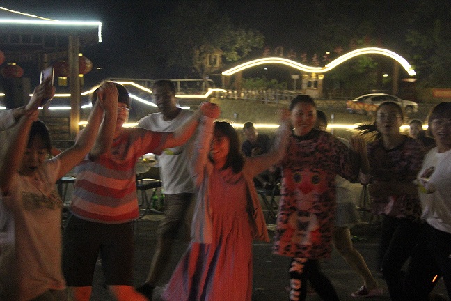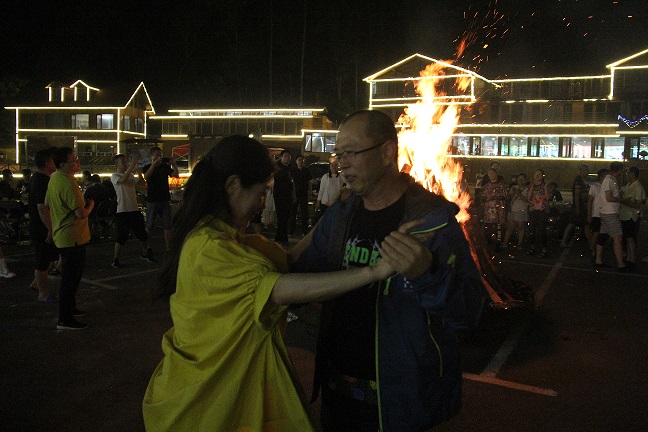 夜色朦朧,晚風(fēng)徐徐,四野寂靜,芳草萋萋,就在這樣的傍晚,由集團皇董事長(cháng)邀請公司總經(jīng)理劉總、財務(wù)共享中心王總監共同點(diǎn)燃篝火,同事們圍著(zhù)篝火一起跳起了歡快的舞蹈,在關(guān)聲笑語(yǔ)中結束了今天行程。