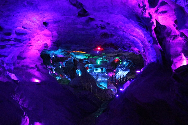 7月1日上午,來(lái)到位于丹東市鳳城賽馬鎮的天鍋古洞。剛入洞口,立刻感覺(jué)到一陣清涼,越往深處走寒意愈強。洞內以天鍋、地峽、白玉、奇石構成的奇特景觀(guān)會(huì )讓人產(chǎn)生“人在青云橋上走,船在天河畫(huà)中游”的體驗。越往深處走,景色越美,洞內五彩斑斕,真像入了仙境一般!