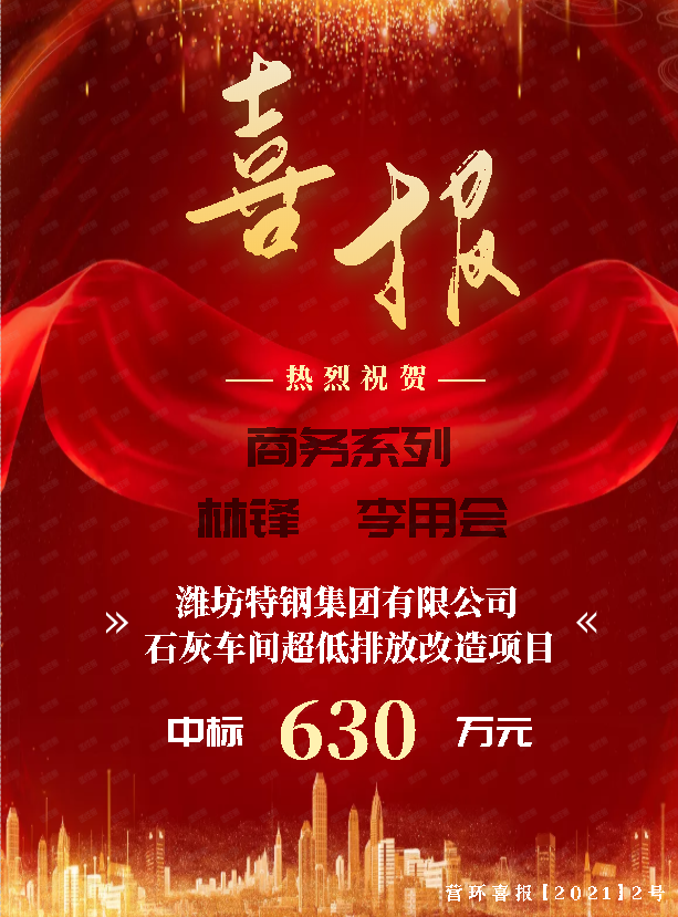 營(yíng)口市環(huán)境工程開(kāi)發(fā)有限公司中標濰坊特鋼集團有限公司石灰車(chē)間超低排放改造項目