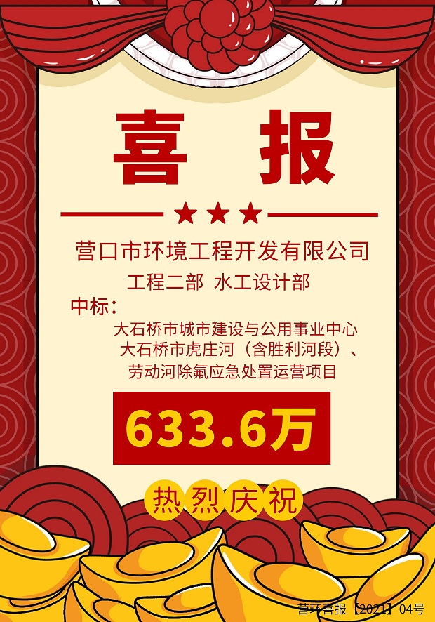 營(yíng)口市環(huán)境工程開(kāi)發(fā)有限公司中標大石橋市城市建設與公用事業(yè)中心大石橋市虎莊河(含勝利河段)、勞動(dòng)河除氟應急處置運勞項目