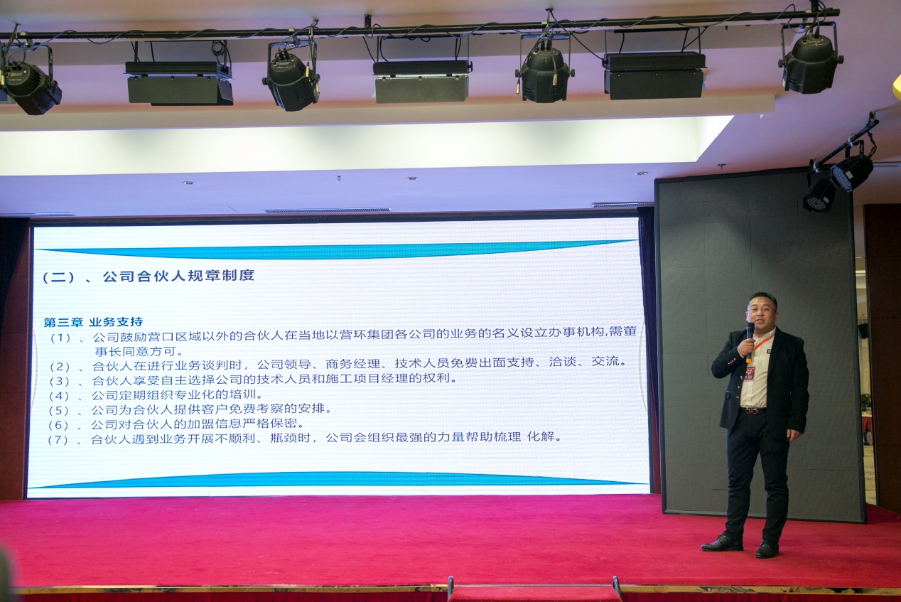 營(yíng)口市環(huán)境工程開(kāi)發(fā)有限公司賈喜東商務(wù)副總做《如何輕松達到事業(yè)另一個(gè)頂峰》報告,報告中就如何尋找項目、如何提高項目成功率及如何跟蹤已簽約項目、讓老客戶(hù)再次購買(mǎi)和轉介紹,進(jìn)行分析講解。