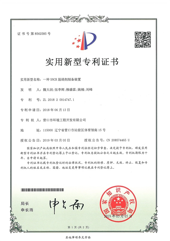 一種SNCR脫硝劑制備裝置-科研專(zhuān)利-營(yíng)口市環(huán)境工程開(kāi)發(fā)有限公司