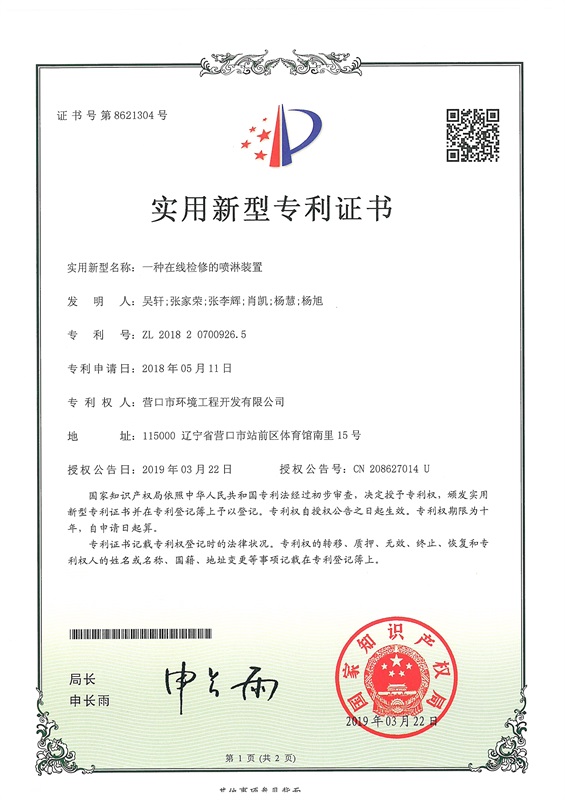 一種在線(xiàn)檢修的噴淋裝置-科研專(zhuān)利-營(yíng)口市環(huán)境工程開(kāi)發(fā)有限公司